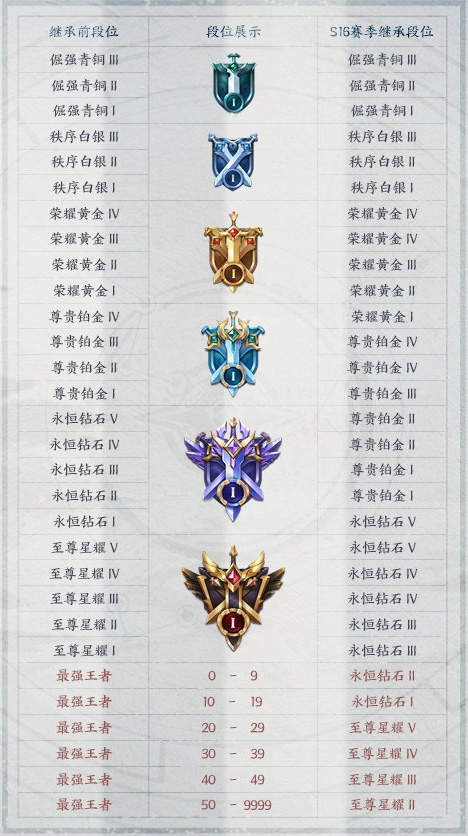 ③-最强王者1-19星继承为钻石段位,20-9999继承都为星耀。
