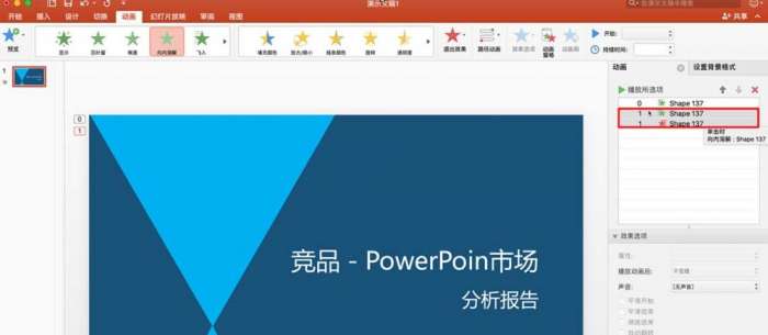 2、点击图形中某个图形,选择动画效果下面的样式,选好样式后,图形左上角会出现动画的数量,同时也会在右边的“动画栏”里显示(如:右边动画栏不出现,随便添加个动画就会出现此栏):