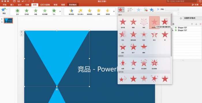 3、再次点击刚才已添加动画的图形,进行多次添加动画,注意右边“动画栏”里没有选中的图层,如有则修改图层样式及参数: