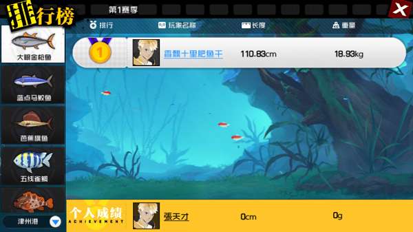里面会有一个专门的鱼类排行榜,根据玩家钓到鱼的种类进行排行,同一种类的鱼中根据鱼的长度以及重量进行排名,想要登上排行榜的玩家一定要多钓鱼。