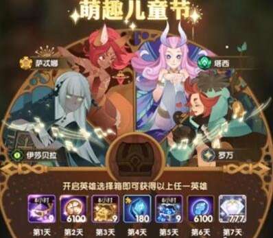 全部奖励领取后,您还可以获得一个英雄选择宝箱,里面有罗万、 塔西、萨忒娜、伊莎贝拉。