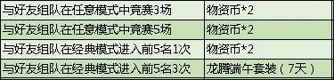 活动期间,与好友完成相应组队竞赛任务,即可领取物资币和套装-龙腾端午(7天)!