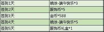 活动期间,累计登录5天,即可领取金币、服饰币及端午主题喷涂!