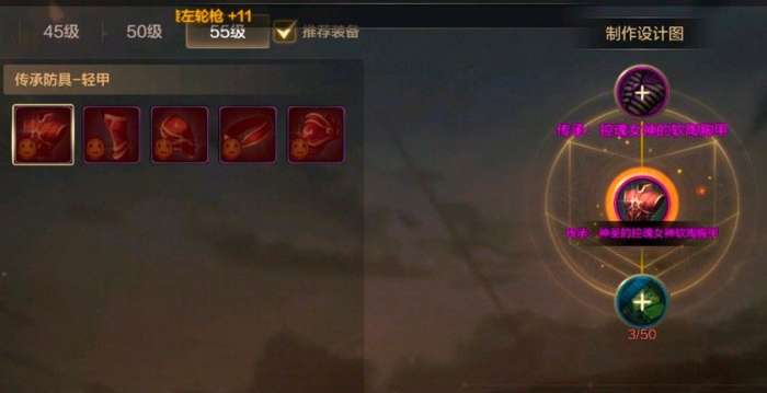 获取方式:从30级可以制作,每天可以获取75个左右金币,30级套装需要210个金币,40级需要285个,50级需要550个。50升55需要2530个宝石,比较困难(反正这个不消耗疲劳,每天做完任务顺便就刷了)