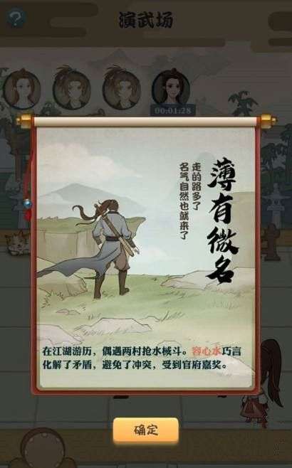 当开始招收弟子以后玩家们就可以跟着剧情走,可以到演武场里面传授弟子武功,当弟子的势力越高,那么战力也会有所提升。
