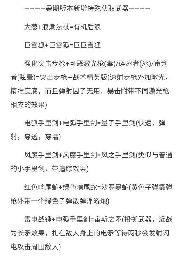 元气骑士中玩家在游戏内可以通过不同的武器种类的合成,去收集更好更稀有的武器,当然这必须具备合成表才可以,不少玩家还不太了解元气骑士暑期新武器怎么合成,接下来小编就给玩家们带来暑期新增特殊武器合成表图解。