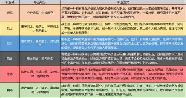 王者全明星计划,是一套庞大的方案,如前文所述,包括职业特色、装备调整、技能调整等等,有非常多的事需要做,在尝试之外,我们需要踏出正式的第一步——明确每个职业的能力特性。