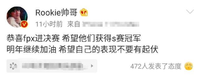 不光光是我们LPL的观众,很多的职业选手也为FPX献上了自己的祝福,其中就包括了与FPX在四强相遇的IG众人。在输掉比赛之后,Rookie发送了一条微博,先是恭喜FPX进入到了决赛,并且希望他们能够获得冠 军。同时也希望自己明年继续加油,希望自己的表现不要有起伏。