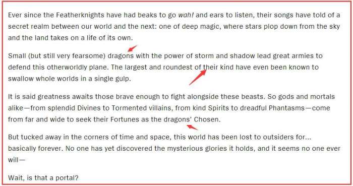 在这项背景说明中提到:体积小的龙率领强大的战士与异界位面对抗,最大的龙族可以吞噬整个世界。