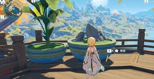 首先这个假山的任务,需要玩家来到望舒客栈这里,然后在上面平台处,可以看到一个假山,直接进行观察,就可以顺利的触发这个任务,此时玩家仔细观察假山,可以看到有标记,需要你找到实际中的这个山,然后在这个标记处来得到东西。