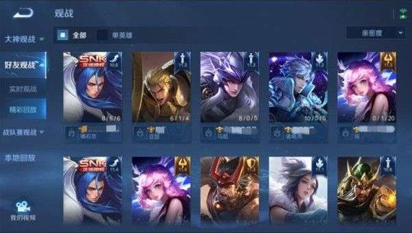 入口:观战>好友观战-精彩回放