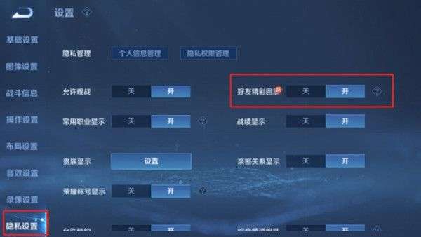 玩家们还可以在设置-隐私设置中修改是否向好友展示您的精彩对局。