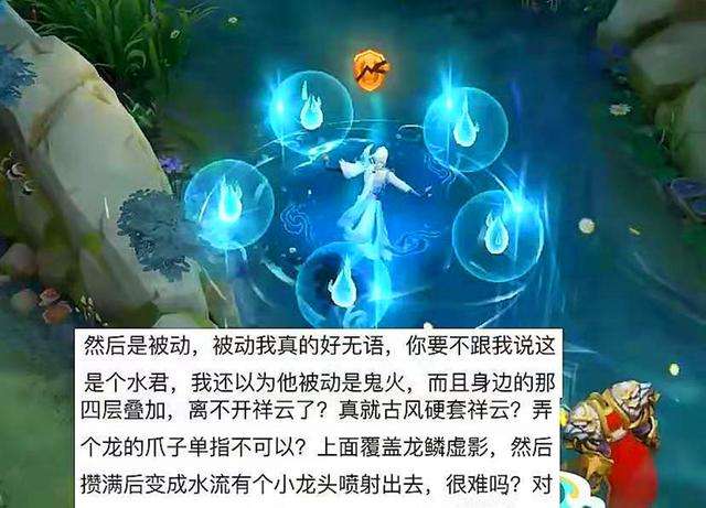 不过也有玩家觉得这个特效有些配不上现在特效横飞的版本,尤其诸葛亮的这款皮肤还是传说品质,觉得可以借鉴铠-青龙志开大招时青龙盘旋的特效,在诸葛亮身上加一个龙头吐水的特效。