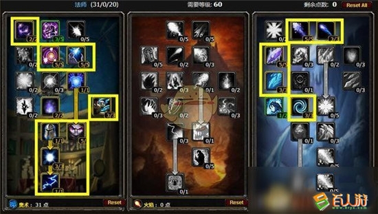 想要火系过渡的话是火10~29, 冰30~60. 满级后是17/34经典奥冰PVP天赋.