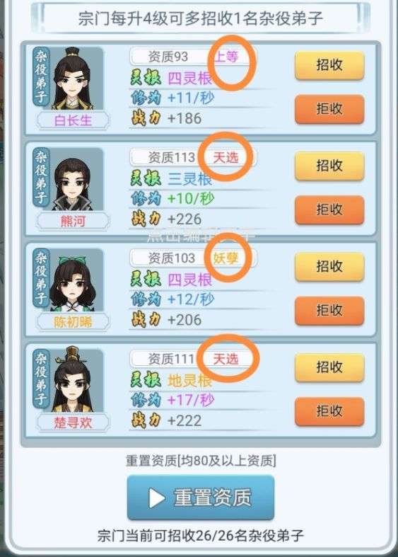 关于修炼速度大家都懂了吧。所以要选择好的品质高的弟子,这样修炼速度才能够提升哦!