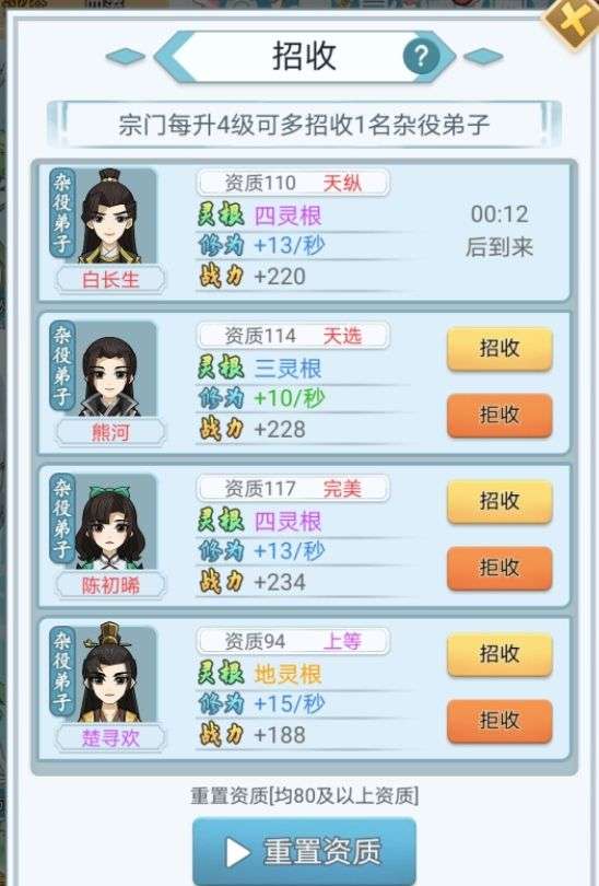 修仙门派模拟器修炼速度是什么?有什么用?修炼速度的数据关系其实跟弟子资质有关,弟子资质属性不同的话,速度也是不一样的,下面就来详细告诉给各位详细技巧吧,快来看看咯~
