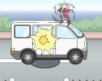3.对井盖使用情侣,会有一辆车将其撞飞,本关的任务就算完成了,恭喜少年顺利通关。