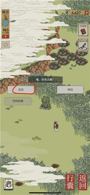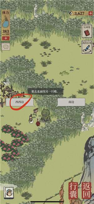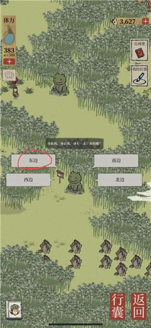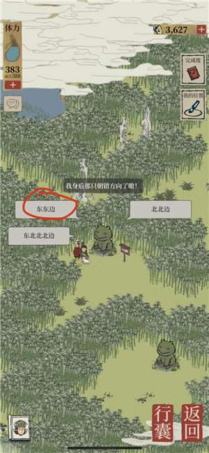 地洞-北(牡丹亭)-西北-西(桃花)-西南(房子)-东东-东东东(宝箱)