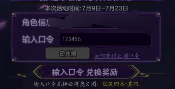 1、如下图所示,须佐佐助口令就是:123456,玩家输入口令后必得奥义图狂笑四杰、其四。