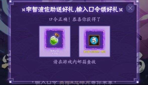 2、口令输入正确后,奖励还有秘术之尘,玩家需要在游戏内邮箱中查收。