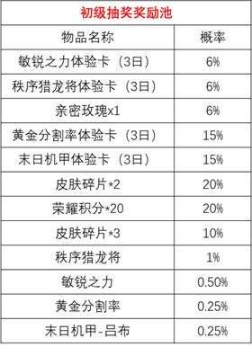 三、活动期间首次进行5V5匹配或排位的对局可以免费获得1次初级抽奖机会,且每个角色只有1次。