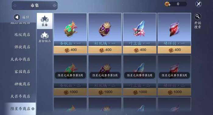 1.新增赛季重置类代币“陨星币”,用于市集-陨星商店中购买可在陨星战场中提升战斗力的“碎星”系列物品,以及地焰身份所需材料。