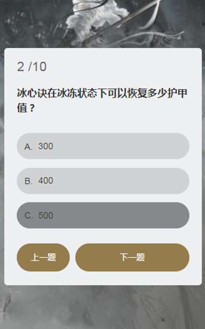 2、冰心诀在冰冻状态下可以恢复多少护甲值?