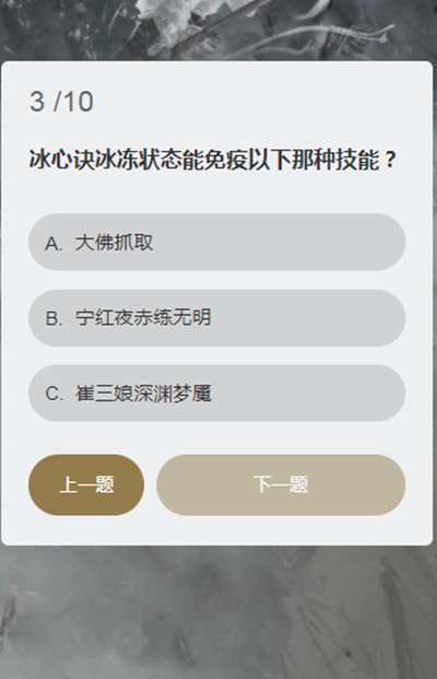 3、冰心诀冰冻状态能免疫以下那种技能?