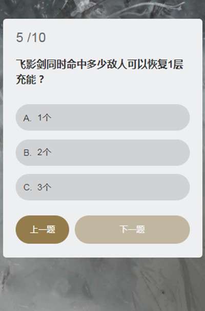 5、飞影剑同时命中多少敌人可以恢复1层充能?