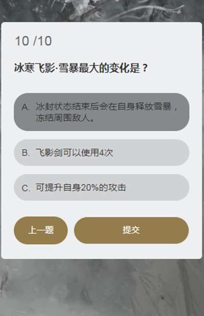 答案:A.冰封状态结束后会在自身释放雪暴,冻结周围敌人。