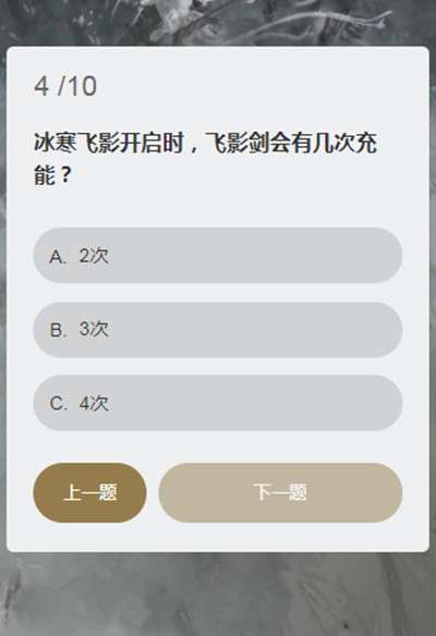 4、冰寒飞影开启时,飞影剑会有几次充能?