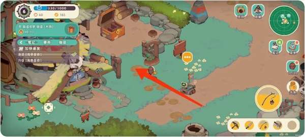 来到村长所在地到之后,按照箭头一直走,走到画红圈的地方,之后向上按照海岸线走