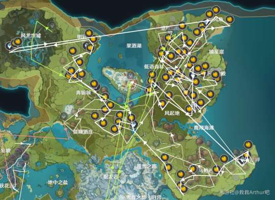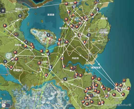 路段2为果酿饵合成材料采集路线(蒙德地区日落果)