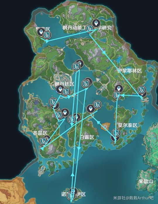路线10为甘露饵合成材料采集路线(无郁稠林及卡萨扎莱宫香辛果)