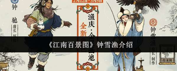 江南百景图钟雪渔怎么样?江南的冬日清晨,总是带着湿冷的气息,而在这样的天气里,有一位姑娘却早早来到了冰钓场。今天小编就带来江南百景图钟雪渔介绍。说起这个在2月12日通过"渔庆·金泥画池"入驻应天府的钟雪渔,她的出现真的挺让人期待的。毕竟作为新的天级居民,她身上有不少值得关注的地方。接下来就跟大家仔细聊聊钟雪渔这个人物,看完之后,各位再决定要不要邀请她入画也不迟。