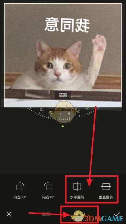 2、在构图下方菜单中,选择【旋转】,就会出现水平翻转以及垂直翻转的选项了,根据需要来进行调整,就可以获得想要的镜像效果了。