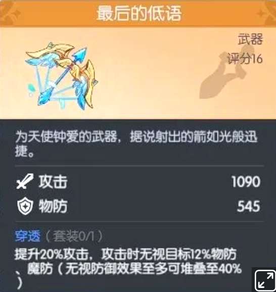 这是一把橙色品质单手法杖,专为高阶法师设计。装备后,塔萝丝每次攻击均可无视目标12%的物理防御与魔法防御,并额外提升20%基础攻击力。该效果不依赖触发条件,全程常驻生效,大幅削弱敌方坦系抗性的同时,直接抬高她的单次技能伤害阈值,是应对高防BOSS与精英怪的首选主武器。