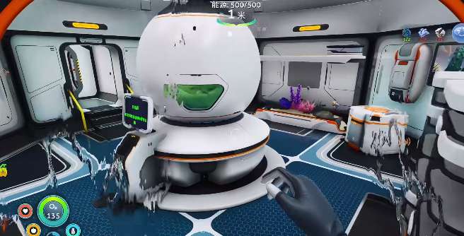 荷叶区下面的红蘑菇区就是进入到中期核心的采集点,具体就是在荷叶区水下延伸的红蘑菇地貌。这里的磁铁矿分布比较密集,在这一个区域深度适中,没有必要选择高级的设备,不过能见度相对比较低。矿脉全部都是隐藏在岩层的缝隙里面,一定要把扫描仪升级到最大可以探测的范围,然后搭配深海切割工具使用,才能精准的定位矿脉。另外区域中还会有伏击型的生物,建议要带上声波发射器,遇到之后应该及时的驱赶。