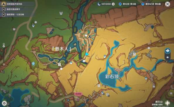 1、来到悬木人的右侧位置,也就是彩石顶的左侧位置,可以看到一个宝箱。