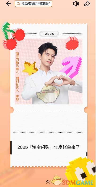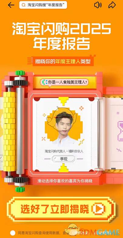 查看2026淘宝闪购年度报告,可现在上淘宝APP,在搜索框输入“年度报告”,进入活动页面解锁主理人身份,还能选择淘宝闪购代言人杨幂一起开启年度报告,查看消费金额、省下费用、抢免单券次数等信息,看完后可在右下角抽奖。