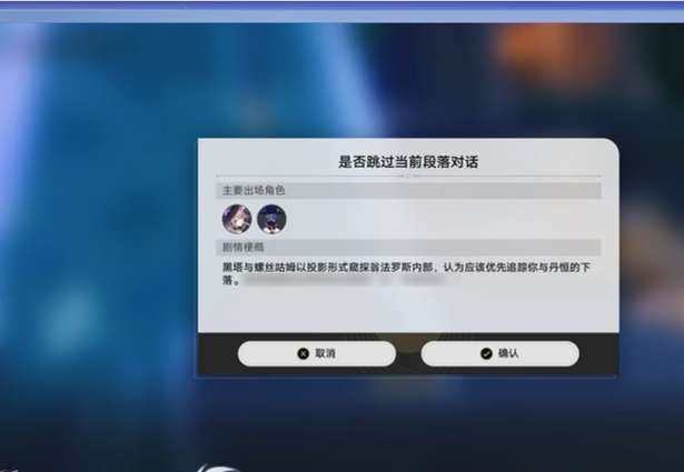 可根据自己的喜好,决定是否跳过本段剧情,跳过前会有梗概和出场角色提示