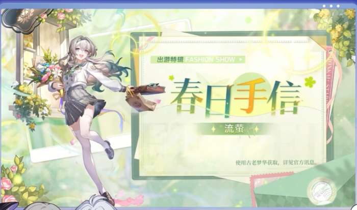 流萤发布新时装,为游戏首次仅古老梦华购买可得的时装,首发价为1350