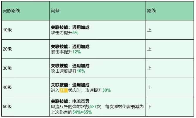 该套灵脉思路为:大幅强化自身攻击、攻速和暴击能力,保持范围伤害的同时,提高对单体的伤害。
