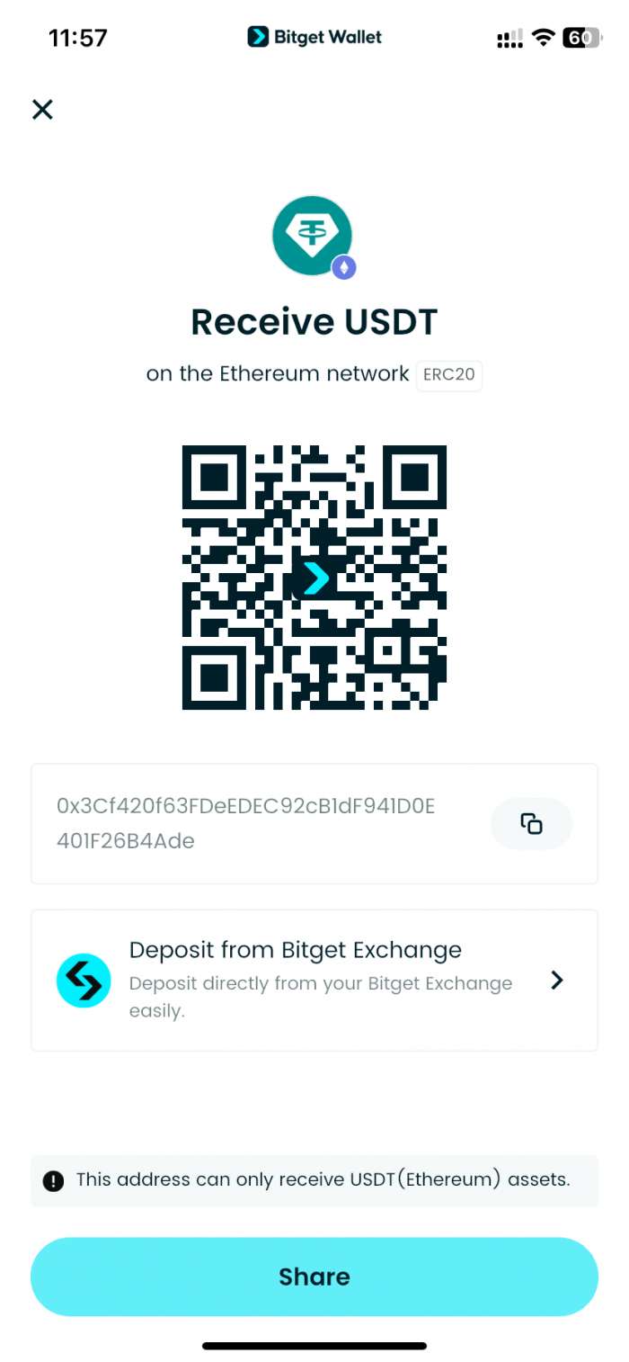 请等待区块链验证您的交易。确认时间因网络而异——例如,以太坊所需处理时间可能比波场更长。交易确认后,您充值的金额将自动入账您的 Bitget Wallet 余额。如需大额充值,请先充值一笔较小金额用于测试,确认路径无误后再发送全部金额。