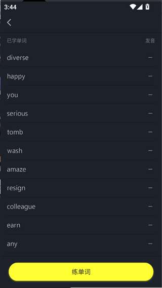 3、在练单词页面底部,点击练单词按钮即可