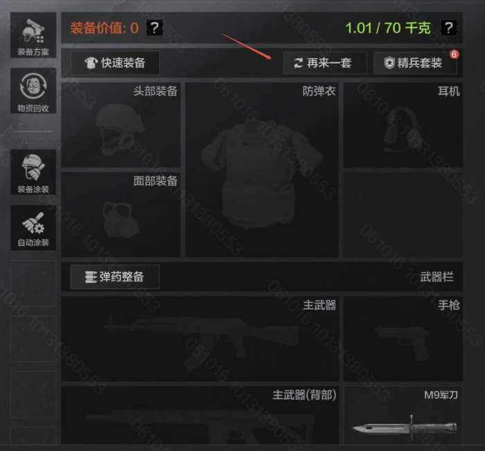 点击再来一套后将会根据先锋上一局的起装方案直接整备并购买对应装备(包括子弹药品等),百分百符合你的起装习惯,大大减少局外备战时购买物资和改枪的时间,起装备战不耗时!