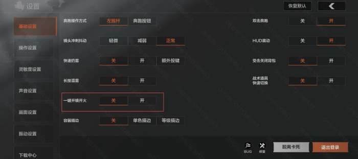 先前收到不少先锋的建议,希望可以增加一键开镜开火功能。在综合考虑到大家的对局需求后,基础设置界面将在新版本中新增开镜开火功能,选择开启后可以通过右侧开火键实现同时开镜并开火。