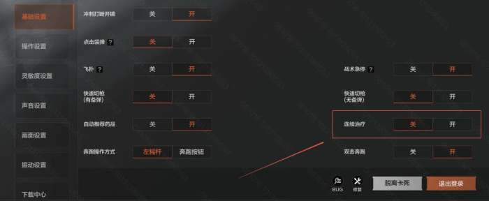 当前版本在局内时,使用医疗用品需要在弹挂或先锋的口袋内才可选择使用,部分医疗用品需要打开背包选择使用。为方便大家状态恢复,减少点击背包找手术包或药品的时间,我们推出了连续治疗功能,点击后将根据先锋的伤势连续逐步使用医疗药品,将按照系统治疗优先级进行恢复。