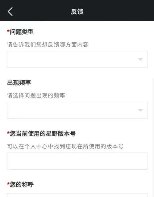 反馈页面,输入投诉内容,上传相关资料,提交星野申请办理。