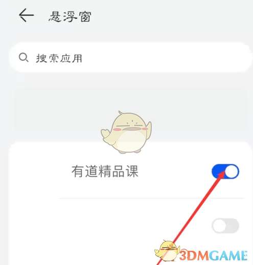 5、在应用列表找到有道精品课,也可以使用搜索查找,然后点击右边按钮,打开权限即可。
